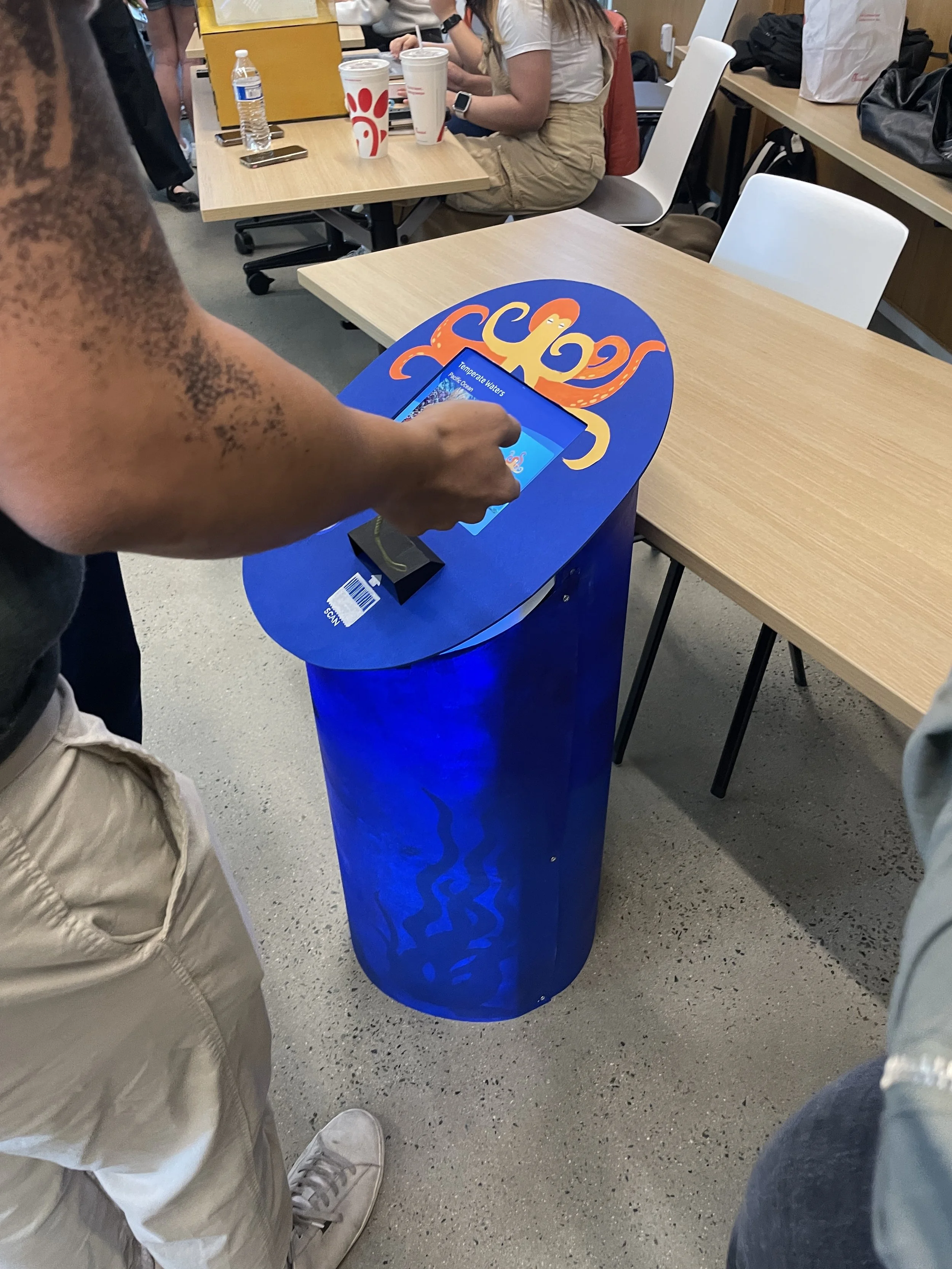 Birch Aquarium Kiosk is a project I did for my prototyping Class. Our kiosk design supplements the existing signs that display animal information, catches the attention for younger visitors, and provides incentive for visitors to apply for aquarium membership. The purpose of this project is to do hands-on design for a product, from conception to final product.